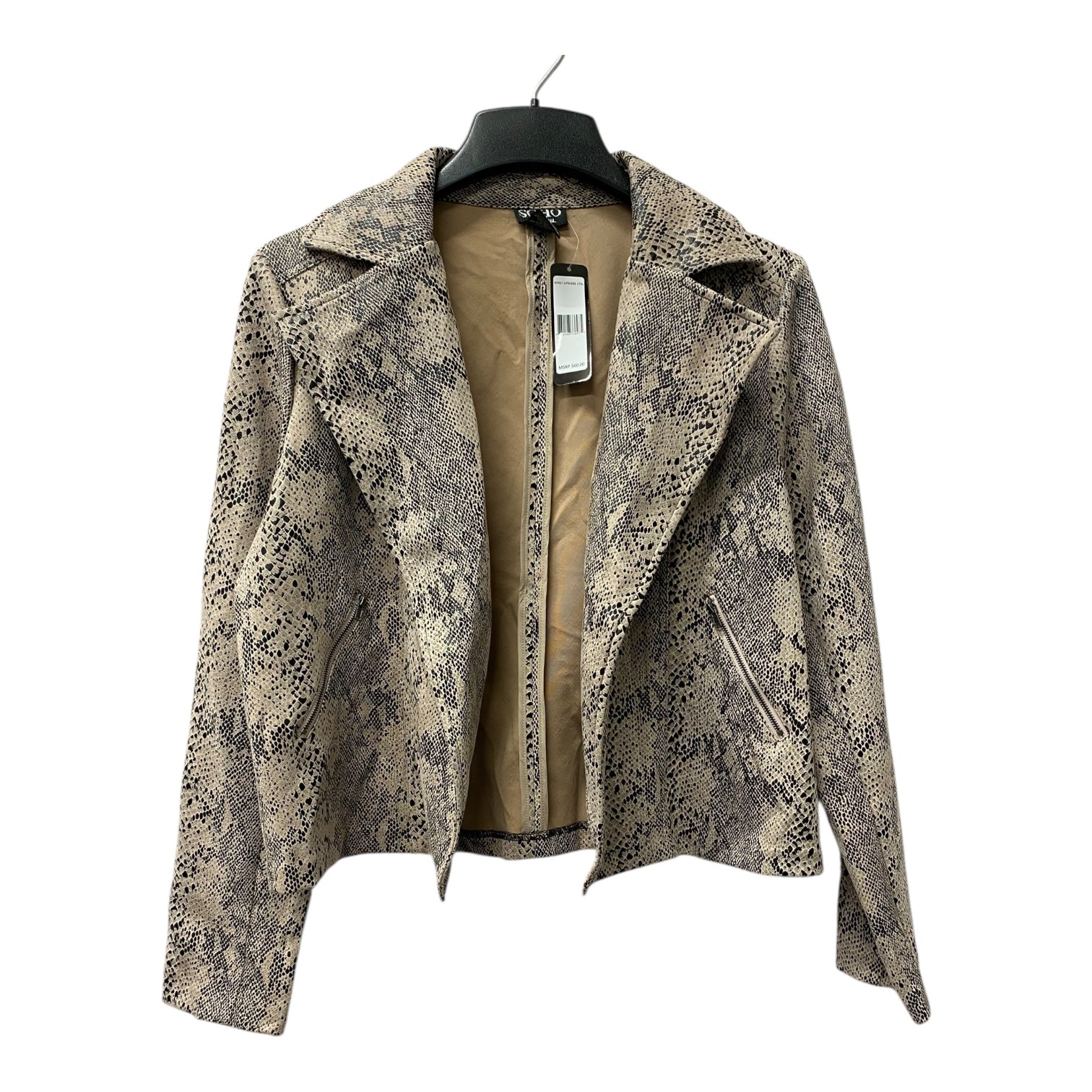 Soho Apparel's tan blazer in size L exudes sophistication and charm, perfect for making a chic statement with timeless style.