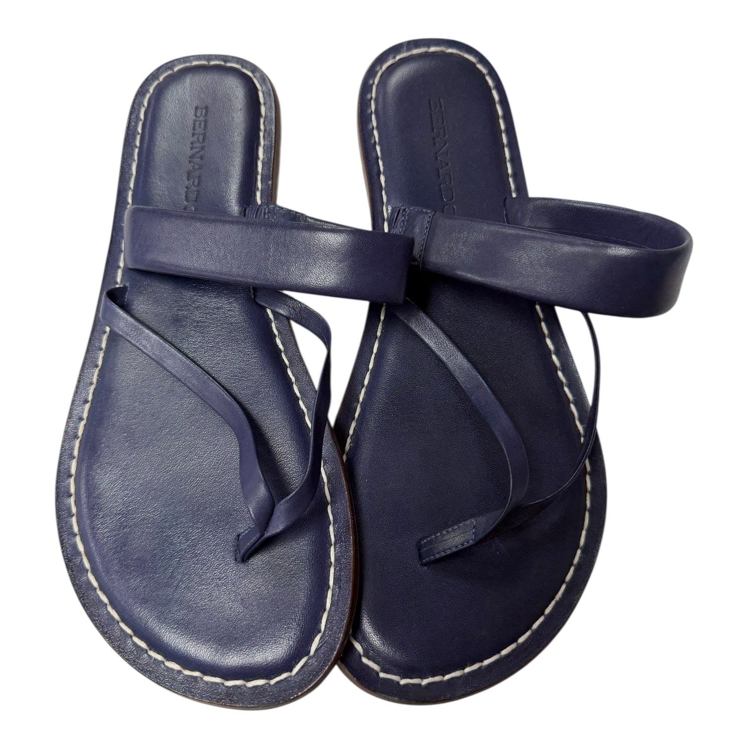 Indulge in timeless elegance with Bernardo's Blue Sandals Flats in size 8. Crafted with precision and comfort in mind, step into sophistication and confidence with every stride. Experience luxury for your feet.